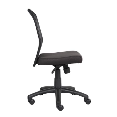 This Budget Mesh Task Chair comes with an open breathable mesh back designed to prevent body heat and moisture build-up. The breathable fabric seat with padding will keep you cool and comfortable during extended periods of work. The adjustable tilt tension control knob, which is located under the seat, allows you to customize the tension of the tilt. It has an upright locking position feature, providing comfortable back support. The pneumatic adjustable gas lift allows for easy seat height adjustment, to help you find the personalized sitting style that suits you and your work environment. The large 27’’ black nylon base provides added stability to the chair. The hooded double wheel casters make it easy to move and shift directions.