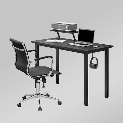 Defined by its simplistic clean lines and streamlined structure, this desk brings a touch of modern minimalism to anchor your office. It includes a side accessory holder hook and a desktop elevated shelf designed to create a simple and attractive workspace with plenty of tabletop space to accommodate all of your office needs.