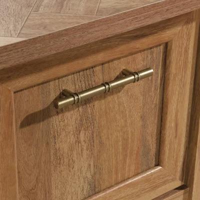 Your workspace deserves to look just as stylish as the rest of your home. Update your home office with the tropical-inspired style and design of this desk from the Coral Cape collection. This home office desk offers a spacious top surface that provides you with room for all your desk essentials like your laptop, a cup full of pens, stacks of folders and your hot cup of coffee too! This computer desk also features a herringbone pattern on its top surface for an extra touch of detail that is sure to stand out. This double pedestal desk features a hidden storage area behind the faux drawer front which includes an adjustable shelf that can be moved to different heights for convenient storing of a variety of items. The file drawer with full extension slides holds letter-size hanging files to help keep you organized. The two lower open shelves provide you with additional storage space for other miscellaneous items. This computer desk with storage is finished on all sides for versatile placement throughout any room in your home. Finished in Sindoori Mango, this charming computer desk with drawers will have you feeling motivated and ready to work.