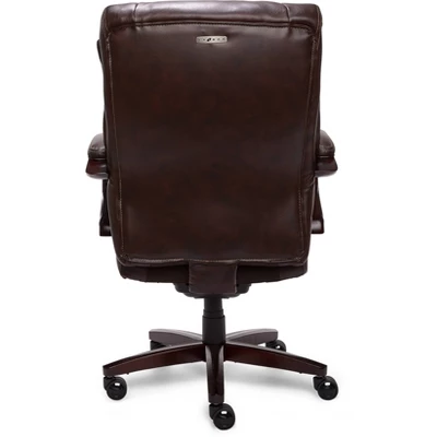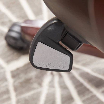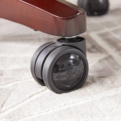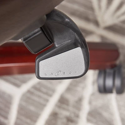 Experience advanced comfort and exceptional support with the La-Z-Boy Bellamy Executive Office Chair. This ergonomic office chair is designed with Comfort Core Plus memory foam cushions—an advanced layering system that offers zone-based support with cushioning in the areas you need it most. The strategically placed plush body pillows and padded headrest combine to provide neck support and minimize pressure points, helping you feel more rested after long days at work. A contoured lumbar area provides lower back support to alleviate discomfort, while the waterfall seat edge helps reduce leg pressure and promote circulation. The ergonomic chair is fully adjustable for a personalized fit, including height, tilt, and recline settings for optimized body alignment. It is constructed with a thick plywood sub core, reinforced back bar, and heavy-duty casters for reliable and long-lasting durability. Rich coffee brown bonded leather and hand-sculpted wooden arms create an elegant blend of traditional style and modern performance that is ideal for any office, home, or entertainment space.