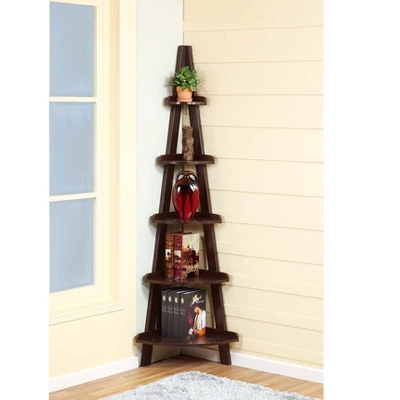 Display your favorite home décor items without taking up much room space with this corner bookcase. Featuring 5 shelves, this corner bookcase is the perfect display for your decorative household items. The different sized shelves give you the option to display items in a unique way without overlaping each other. The display bookshelf is made using metal hardware and composite boards to make sure it’s durable enough to handle daily use even in the long run while being sturdy enough to handle anything you can place on it.