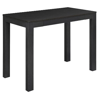 Redefine your workspace or any room in your home with the sleek, minimalist lines of this attractive Room & Joy George Computer Desk with Drawer. This Computer Desk is designed with classic parsons styling that includes a simple silhouette with clean lines. The preassembled desktop means this Desk goes together simply by attaching the 4 legs so you are ready to work in no time. The Desk features a small center storage drawer that’s perfect for pens, paper, computer peripherals and other small office supplies. The Desk also works great as a side table in your living room. Made of laminated MDF and particleboard, the finish looks right at home with dark bold colors or it can be paired with neutrals for a subtle look. The Desk ships flat to your door and minimal assembly is required. Once assembled, the Desk measures to be 30”H x 39”W x 19.7”D.