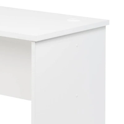 The multipurpose L-Shaped Desk is a versatile addition to a home office or family room and its symmetrical design means it can be installed left or right as your workspace demands. It has been thoughtfully designed to include three wire management locations (one at each end and one at the corner) as well as modesty panels positioned slightly forward to allow access to electrical outlets. Because it is finished on all sides, this workstation will fit snuggly in the corner or can be turned around and positioned like an executive desk. With ample desktop surfaces for dual monitors, the multifunctional L-Desk is also ideal as a gaming center. The corner compartment will fit most CPUs or gaming consoles or can be used for storage. The extra desk space also makes a great place to put a printer or scanner or to simply spread out books for studying. Ships ready to assemble, includes an instruction booklet for easy assembly and has a 5-year manufacturer’s limited parts warranty. Manufactured in Canada and meets all North American safety standards.