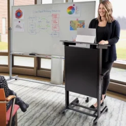 Stand Up Desk Store Mobile Adjustable Height Rolling Lectern Podium With Heavy Duty Steel Frame