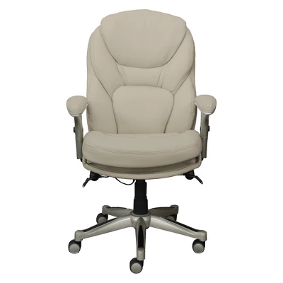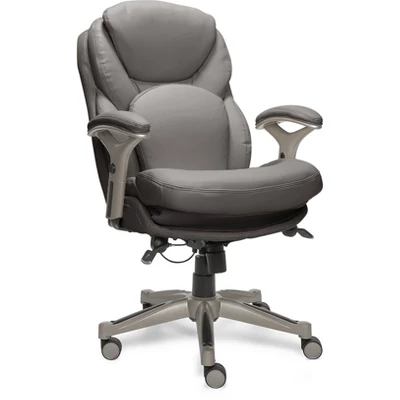 Experience relief with the Works Executive Office Chair with Back in Motion Technology from Serta. This chair has a durable build and is packed with features like adjustable height and tilt with armrest-level controls. The thick, ergonomically contoured upholstery features Back in Motion Technology designed to pivot the low back forward and encourage a positive neutral position for long-term comfort.